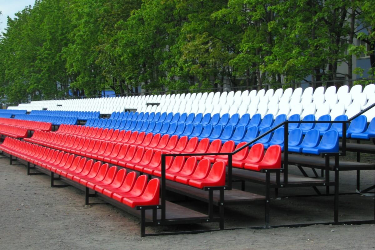 Главная страницаВ компании «Уличный турник» Вы можете заказать трибуны для зрителей любого типа и сложности. Мы производим металлические трибуны как с пластмассовыми сиденьями, так и с лавками. Пластиковые сидения оборудованы дренажным отверстием, что дает возможность использовать зрительские трибуны на улице. Помимо этого, уличная трибуна может быть доукомплектована навесом, а также необходимым подъемом. Расцветка, размер и комплектация конструкции определяется заказчиком.