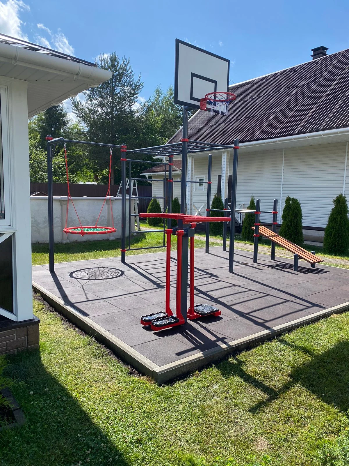 Комплексное спортивное оборудование во дворе частного дома, выполненное по индивидуальному заказу- это мечта! У вас будет полноценная спортивная площадка прямо у себя во дворе.